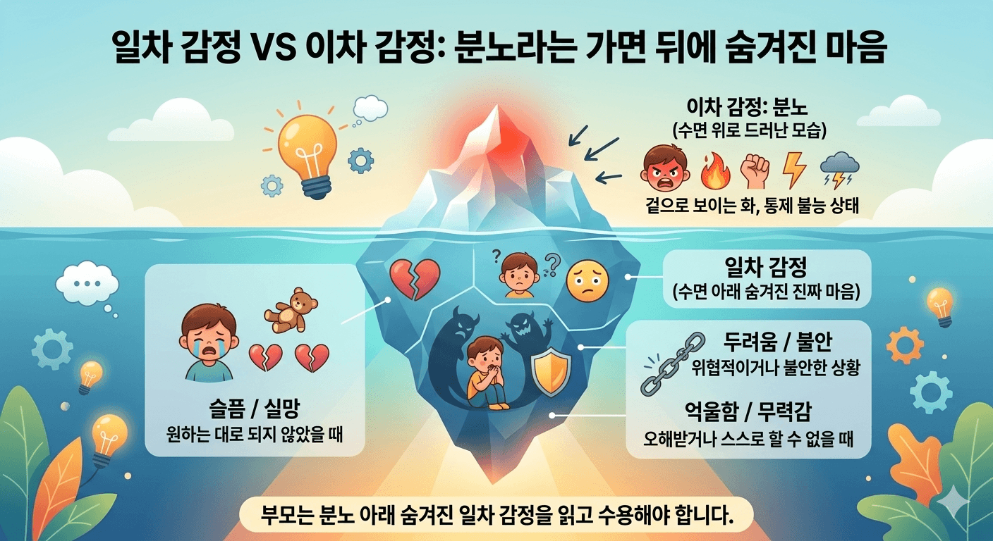 부모가 아이의 '화' 그 자체만 보고 혼을 낸다면, 아이는 수면 아래의 진짜 아픔을 치유할 기회를 영영 잃어버리게 됩니다.