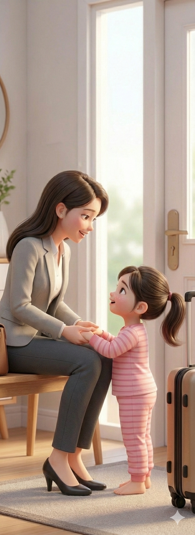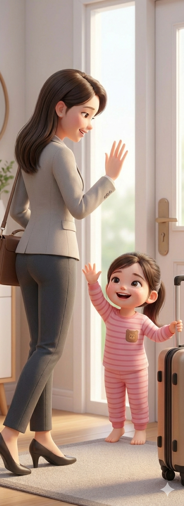 아이의 울음소리가 가슴 아파 자꾸 뒤를 돌아보거나 다시 안아주는 행동은 불안을 연장시킵니다. "엄마 일 다녀와서 저녁 먹을 때 만나자! 사랑해"라고 분명하게 말하고 웃으며 인사를 나눈 뒤 바로 나가는 것이 좋습니다. 부모가 불안해하거나 망설이면 아이는 상황을 더 위협적으로 느낍니다.